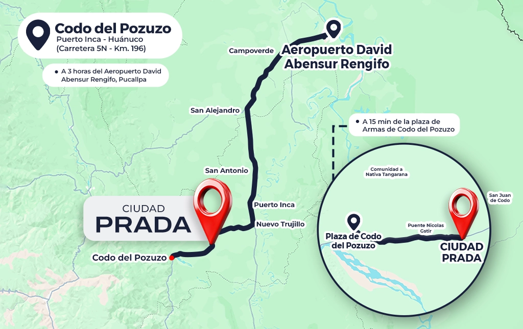 Ubicado en Codo del Pozuzo, Huánuco, a solo 15 minutos de la plaza de armas y 5 minutos del puente Nicola Gstir. Accesible desde Pucallpa en 3 horas por carretera, en una zona con gran biodiversidad y en crecimiento. Un entorno perfecto para invertir y conectar con la naturaleza.